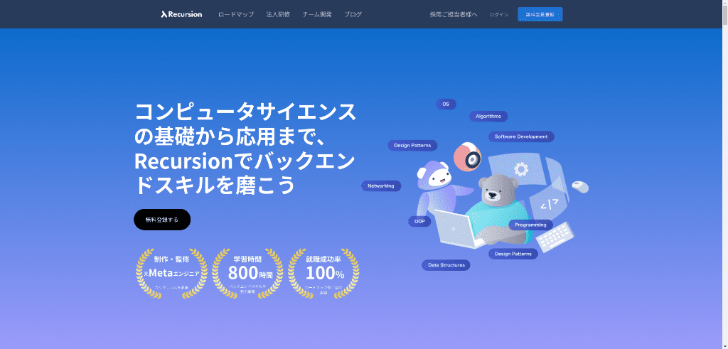 Recursionは、元Metaエンジニアが開発したコンピュータサイエンス学習プラットフォームです。
