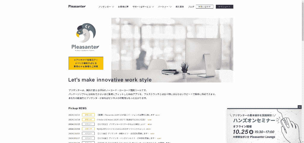 プリザンターは、無料で使えるOSSのノーコード・ローコード開発ツールです。